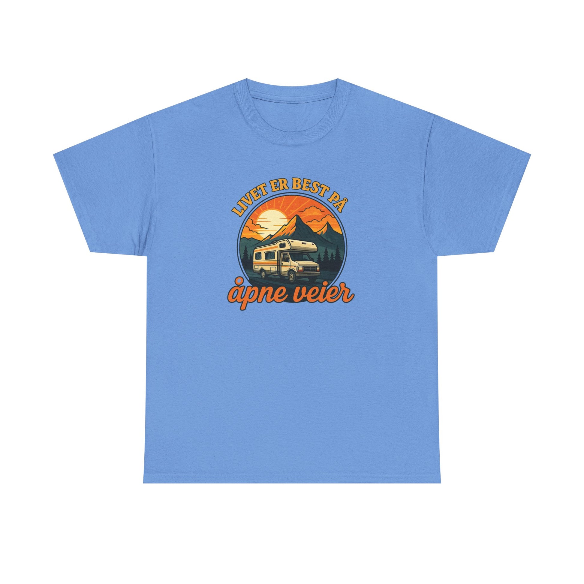 Denne T-skjorten er for deg som vet at friheten finnes der asfalten møter horisonten. Enten du reiser med bobil, motorsykkel eller drømmer på fire hjul – dette er din uniform.